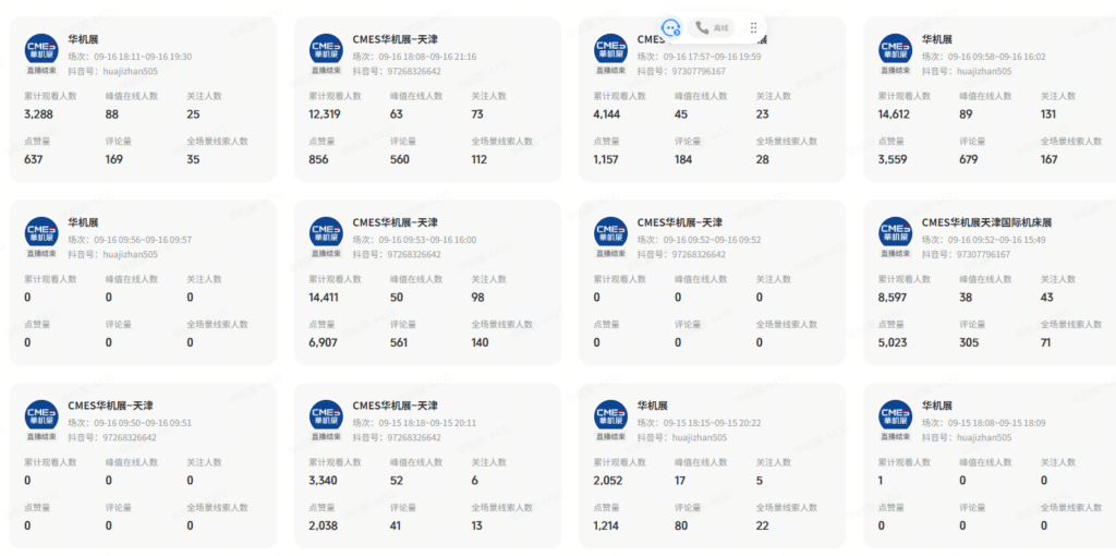 天津国际机床展在展前及展中同步设了4个线上直播分会。辈ナ背だ奂86小时,直播曝光人数238万、直播观看人数15万,有效实现了线上线下联动,彰显了华机展在推动O2O展媒融合、引领新会展模式方面的领航地位。